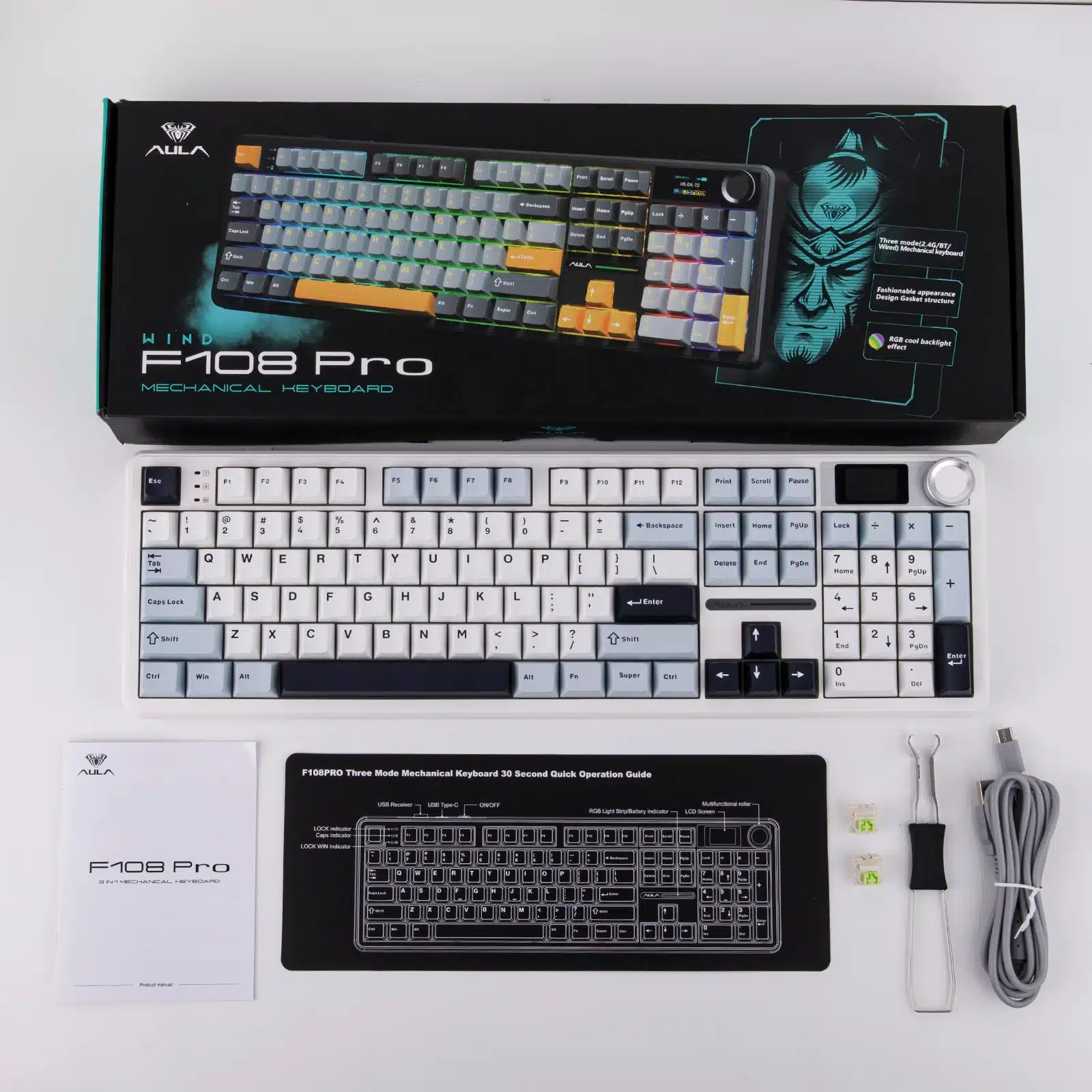 Meet the 100% full size variation of the EPOMAKER X AULA F75 Max, the F108 PRO Mechanical keyboard that offers the same creamy sound and unparalleled performance as F75 Max but in upgraded full-size layout with customizable Screen. The 104 anti-ghosting keys deliver accuracy and greater possibilities in configuration and controlling, ideal for multitasking and fast response in gaming and office. While the 2-stage kickstand, low front height and cherry profile keycaps rid you of finger fatigue and wrist strain for a pain-free day of work.
