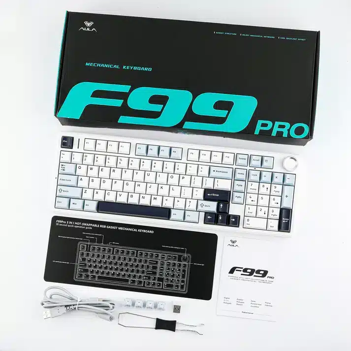 Building on the foundation of the AULA F99, the F99 PRO features a 96% layout with the addition of a rotary knob and one extra key. This layout retains most of the keys found in a traditional 108-key keyboard but with a more compact size, saving valuable desk space and providing more customization possibilities.