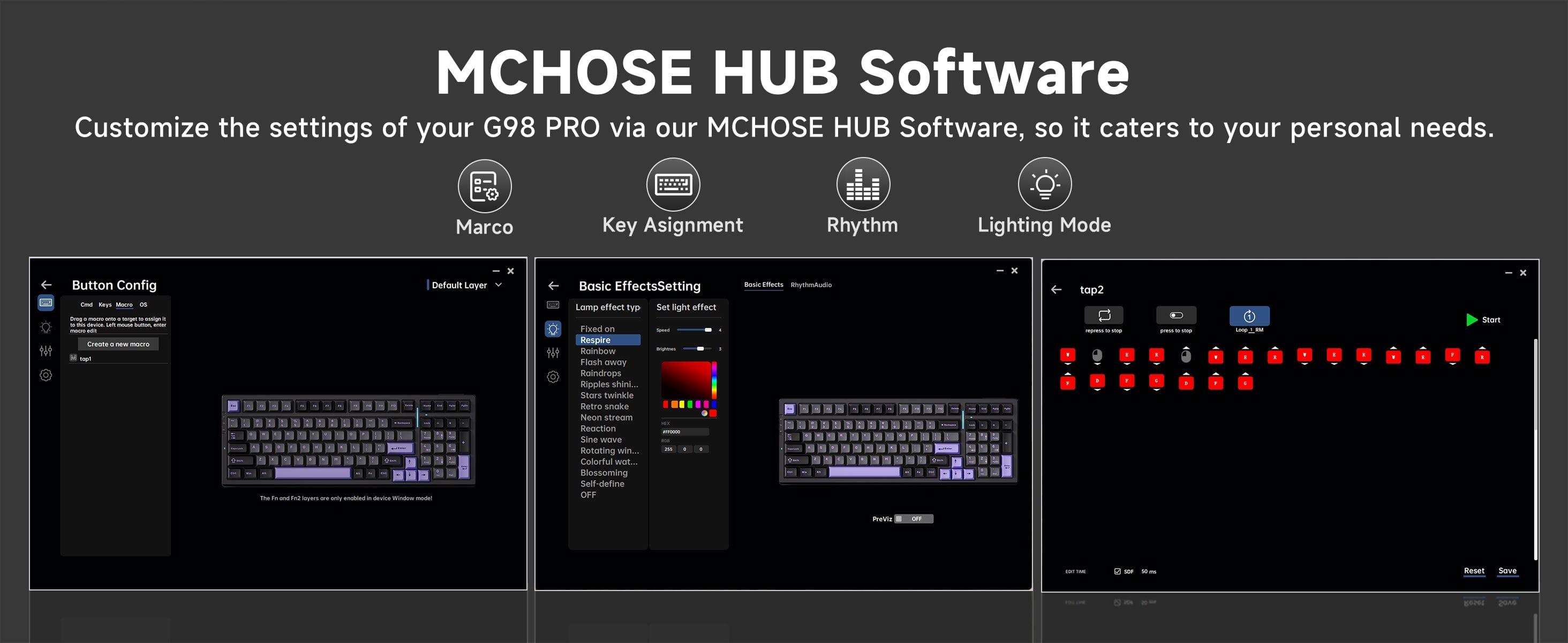 Featuring a classic gasket structure, the G98 Pro excels in sound dampening and shock absorption. With five layers of noise-absorbing padding, it ensures pure typing sounds and a consistent feel. The evenly distributed backlighting adds to the overall experience, providing both comfort and visual appeal with every keystroke.